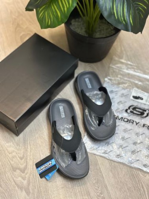 SKECHER S GO RECOVER SOFT GREY BLACK SLIPPER